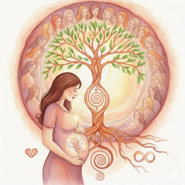 Tu apprends à transformer le deuil en un amour vivant. Les "Étoiles" (bébés partis trop tôt) ne sont plus une source de douleur figée, mais un "Lien d'Or" sacré et éternel qui enrichit ta sagesse.